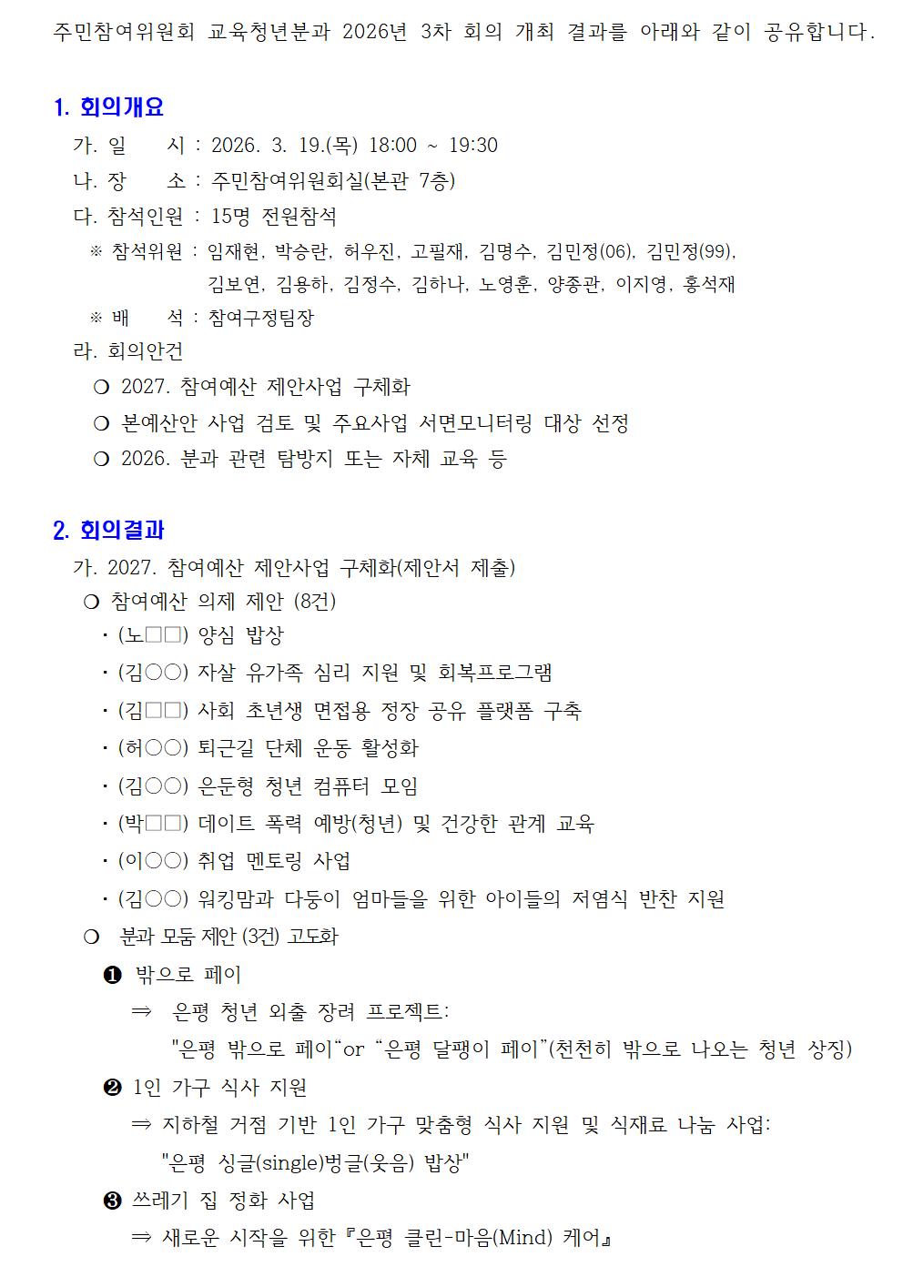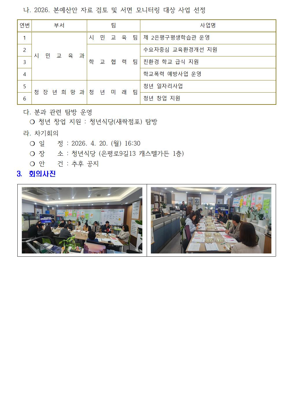교육청년분과 2026년 3차 회의 개최 결과