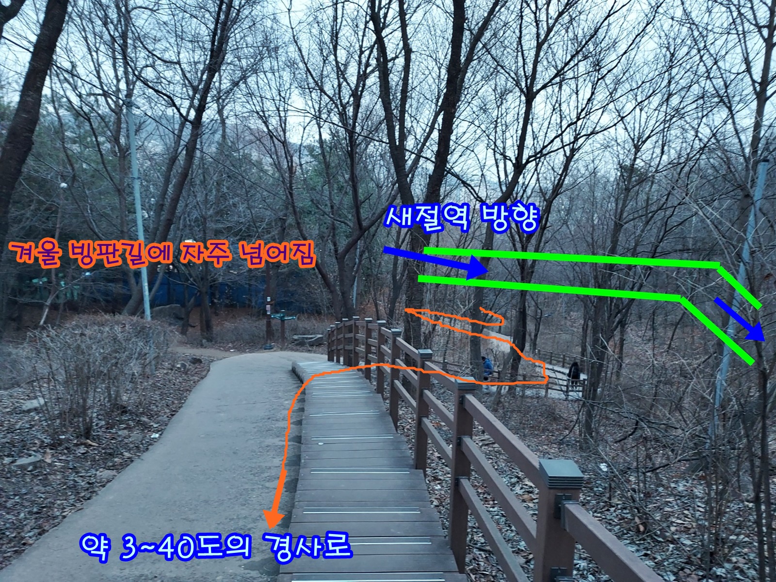 오르막으로 힘들기도 하지만 겨울에는 위험합니다.