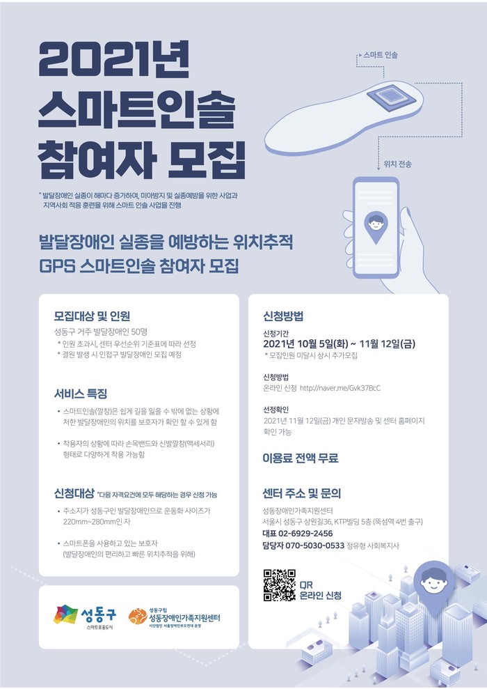 ∙ 스마트 인솔(스마트 깔창)은 신발 인솔에 IOT칩을 삽입하여 실시간으로 사용자의 위치를 파악하고 보호자가 설정해놓은 경로 외에 다른길로 벗어나게 되면 보호자에게 문자메시지를 바로 전송하여 큰 사고를 미연에 방지하고 빠른 후속조치를 취할 수 있어 각종 위험상황에 취약한 발달장애인과 치매노인에게 IOT기술을 접목시킨 스마트 인솔을 배부하여 사용하게 하여야 함