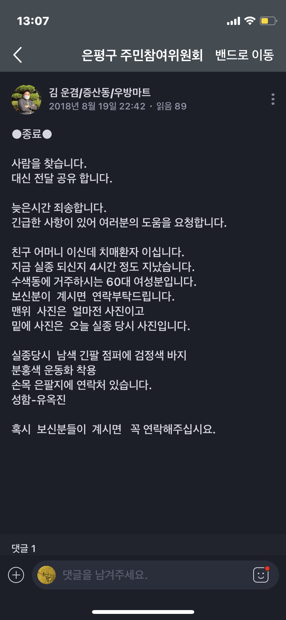 ∙ 발달장애인과 치매환자에 대한 실종 신고가 수시로 이루어지고 있고, 당사자는 실종 또는 각종 위험 상황으로부터 스스로를 보호하기 어려움