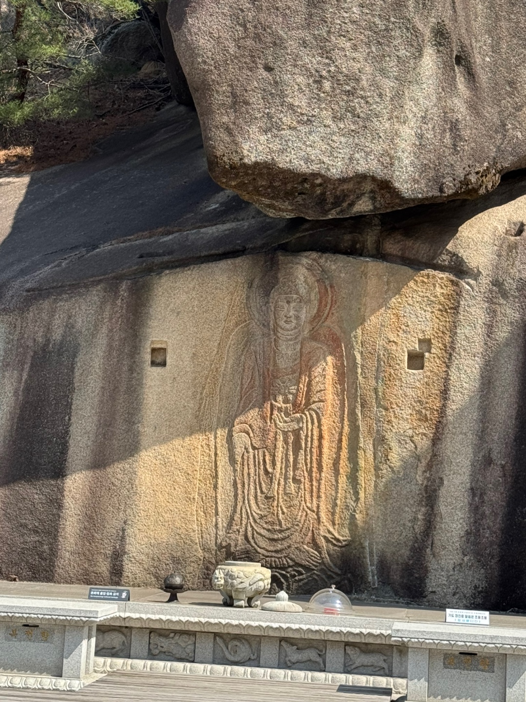 a relief sculpture engraved directly into a rock face. Right next to it, the temple blends beautifully with the surrounding rocks and nature.